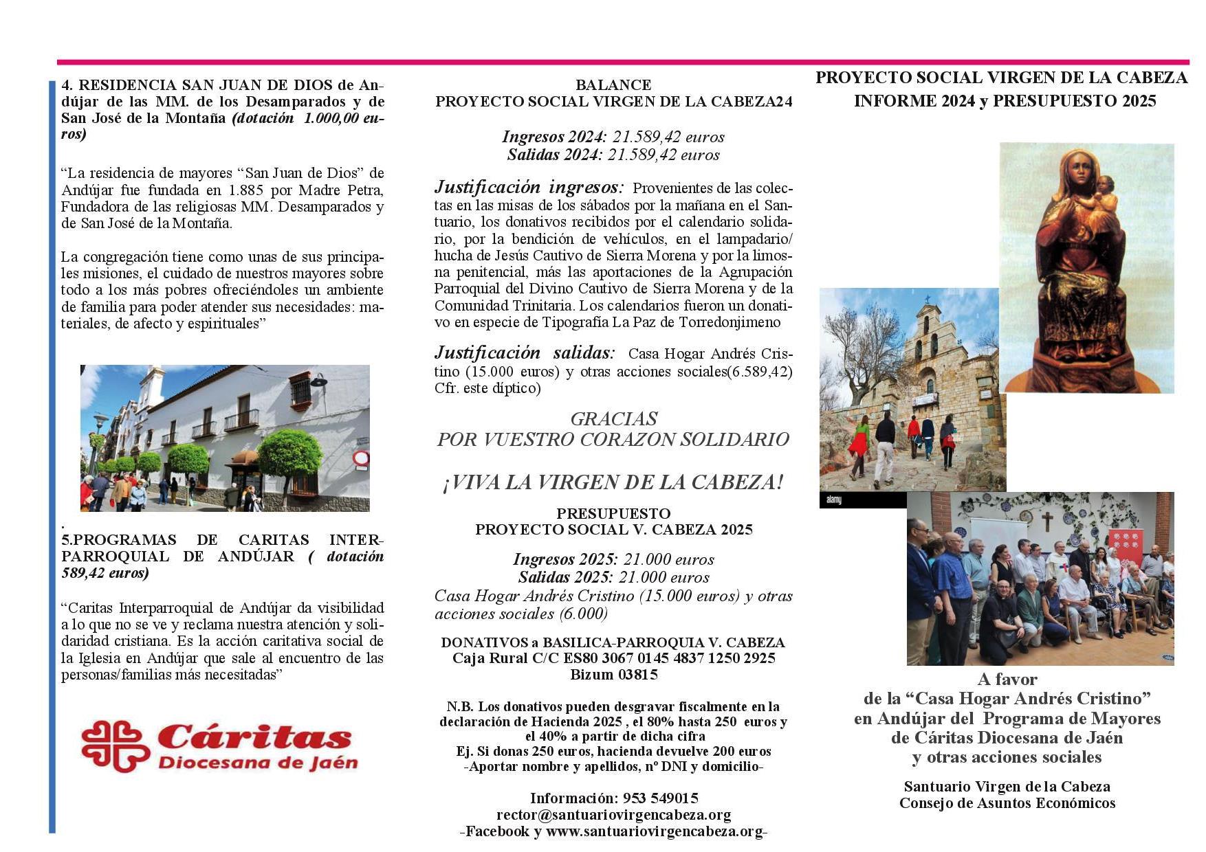 "Proyecto social Virgen de la Cabeza: Triptico informativo del balance 2024 y presupuesto 2025"