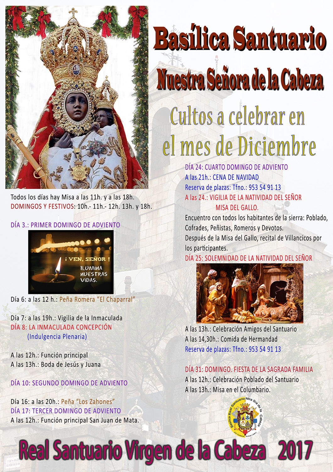 ACTOS QUE SE CELEBRARÁN EN EL SANTUARIO DURANTE EL MES DE DICIEMBRE DE 2017