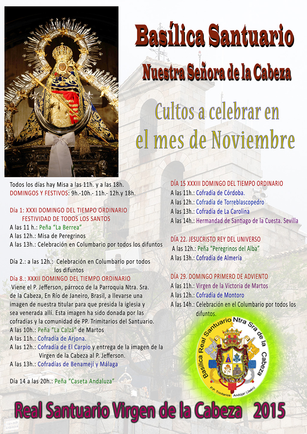 ACTOS QUE SE CELEBRARÁN EN EL SANTUARIO DURANTE EL MES DE NOVIEMBRE