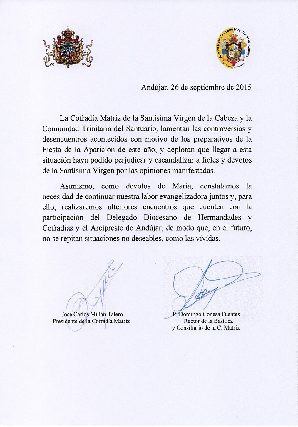 COMUNICADO CONJUNTO DE LA COFRADÍA MATRIZ Y LA ORDEN DE LA SANTÍSIMA TRINIDAD