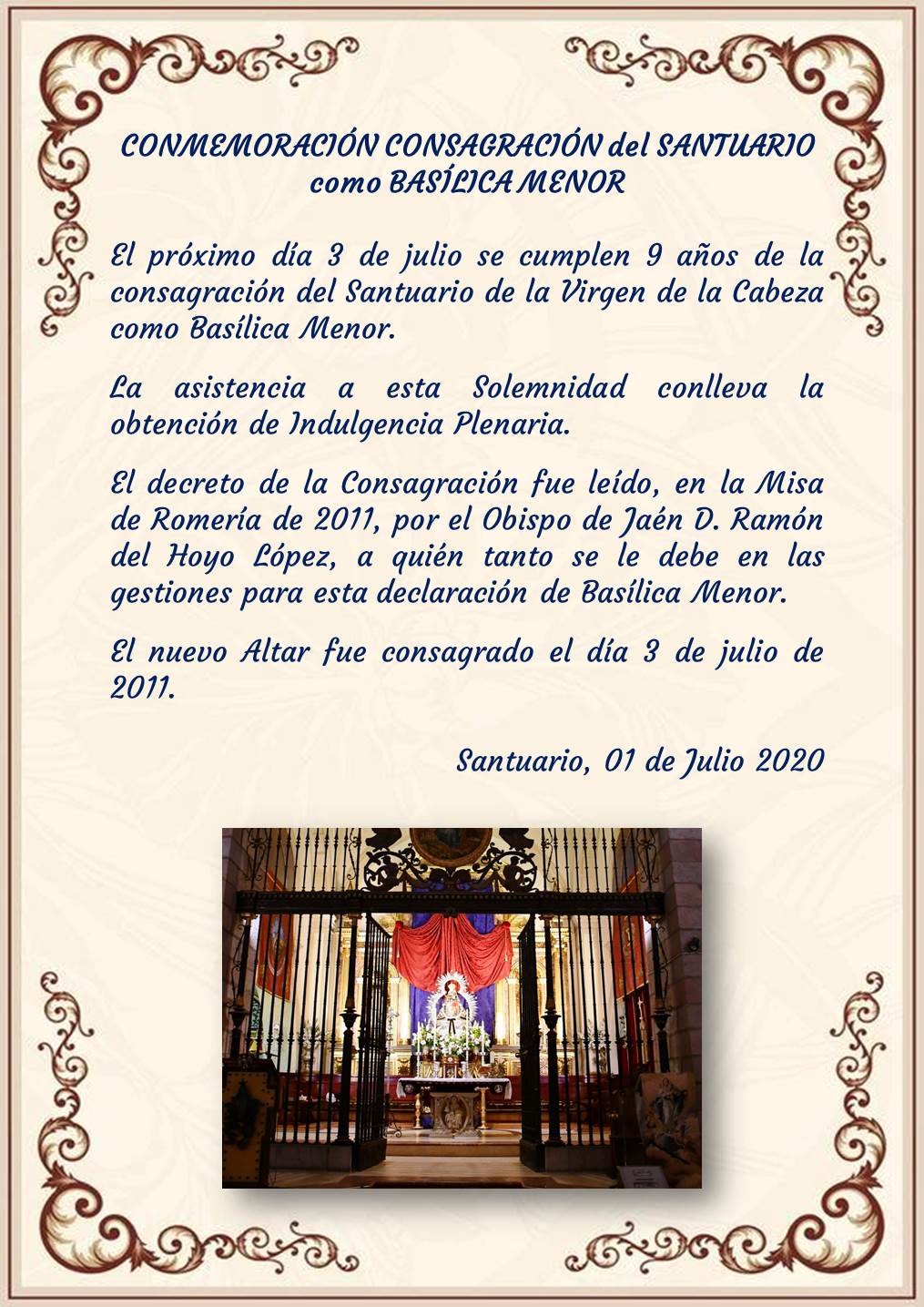 CONMEMORACIÓN CONSAGRACIÓN del SANTUARIO como BASÍLICA MENOR