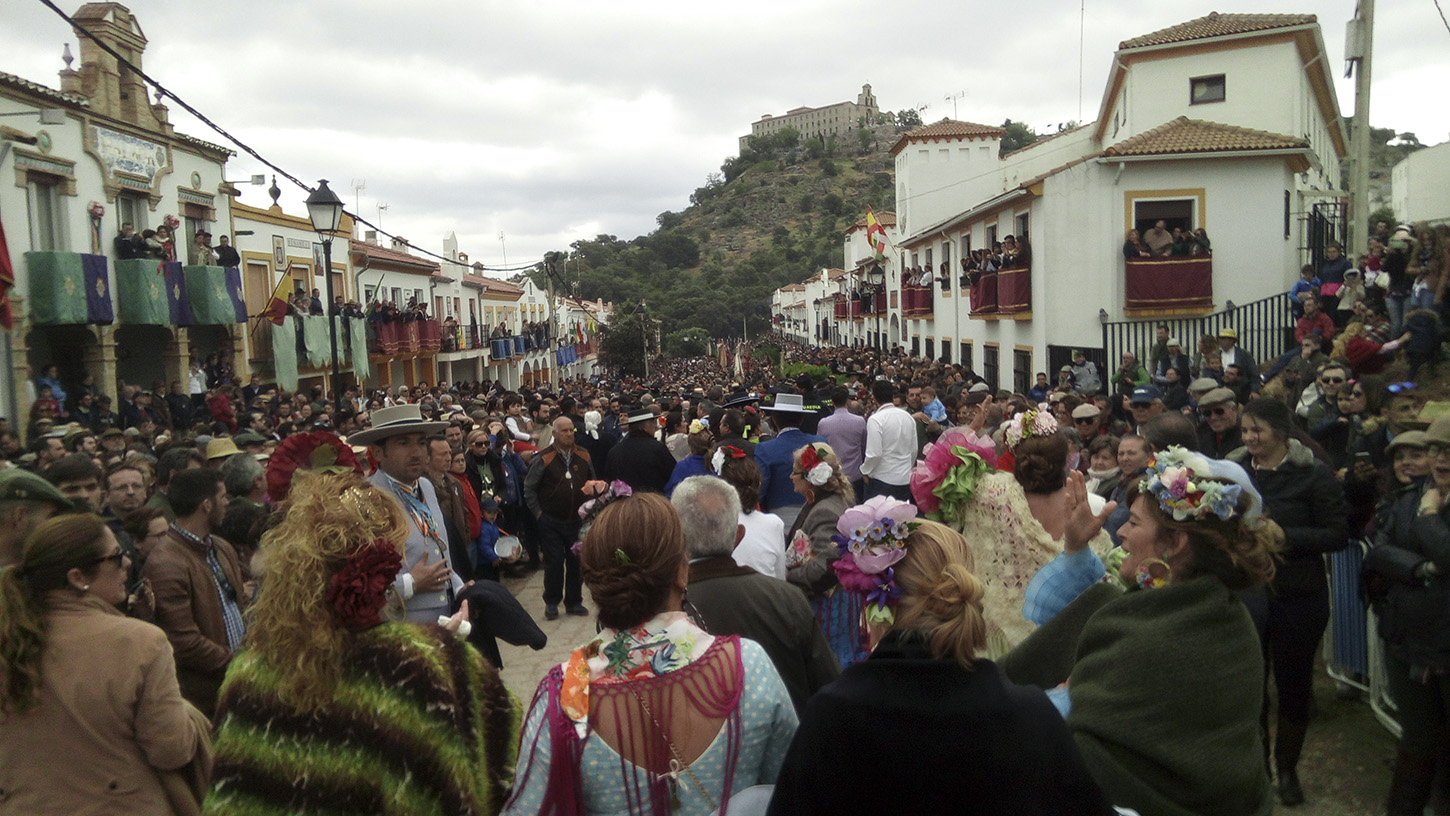 En Filo la carretera de vuelta, haciendo la estación en la Cofradía de Andújar, cantándole a la "Morenita". Así llego entre las Cofradía de la Virgen de la Cabeza, que algunas llevaban esperándola, tres horas.