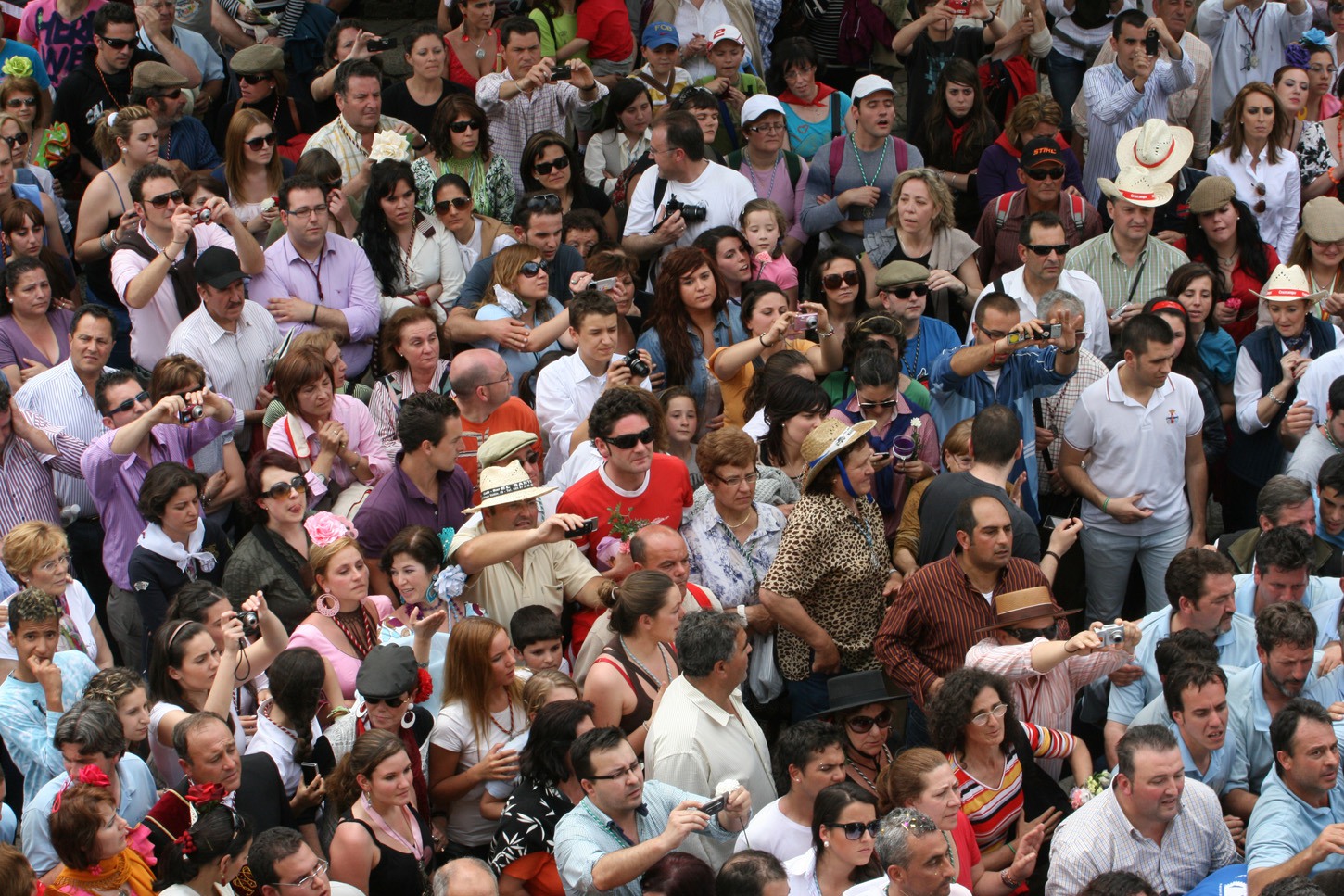 Nos dábamos cita al segundo acto de la Romería, el Santo Rosario, en la explanada de la plaza, frente al Arco, que da inicio la calzada principal.