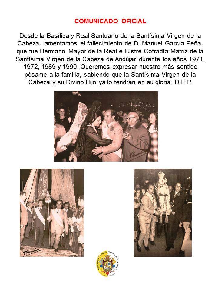 FALLECIMIENTO de DON MANUEL GARCÍA PEÑA - COMUNICADO -