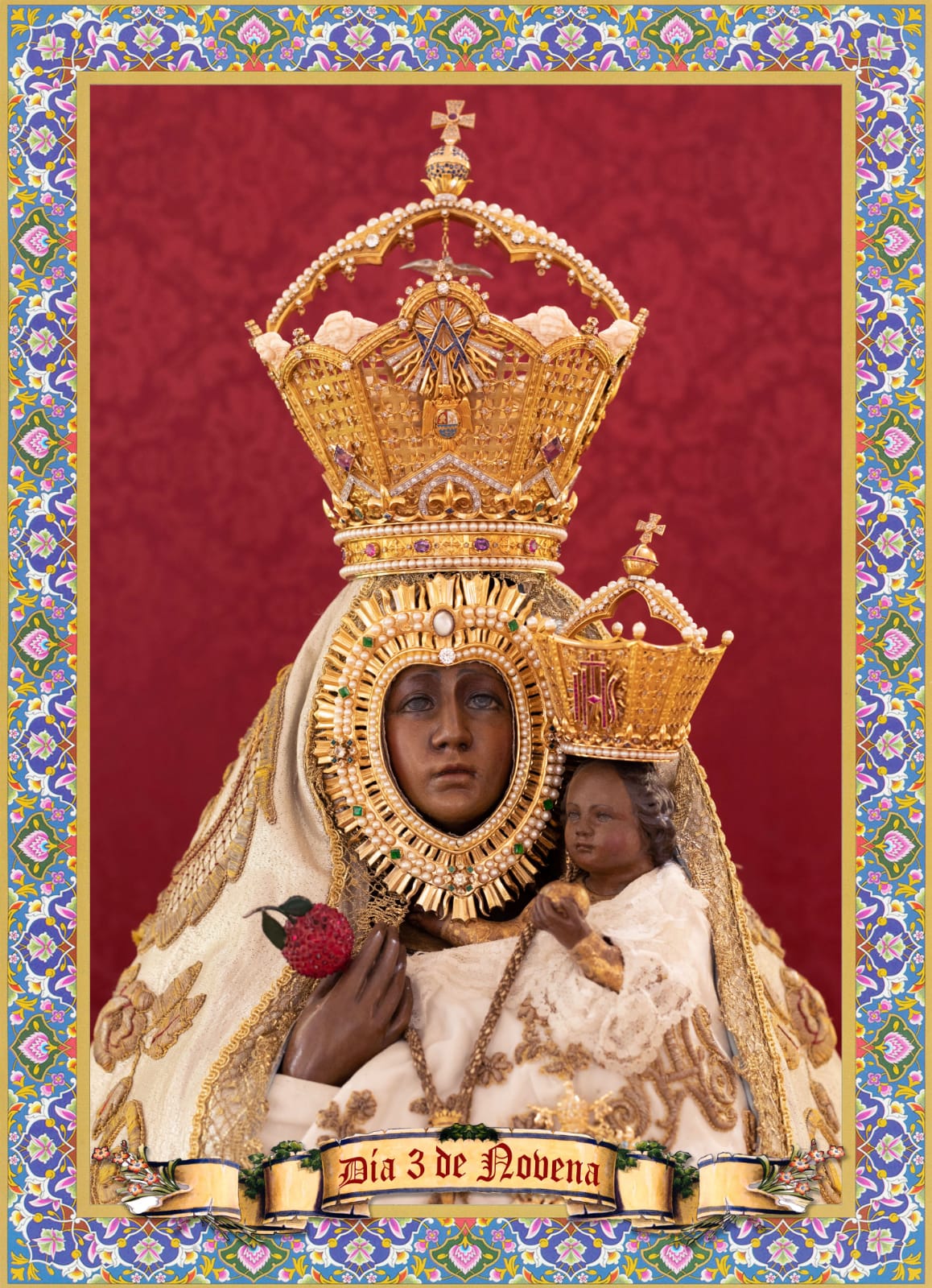 Virgen Santísima de la Cabeza, Madre de Dios y de la Iglesia, que has querido establecer tu Santuario en esta Sierra Morena para auxilio de los cristianos, consuelo de los afligidos, refugio de los pecadores y aliento de los peregrinos y romeros, dígnate acoger con amor maternal las súplicas que durante esta novena te dirigen tus hijos y devotos. Y, pues, tu Hijo Jesucristo te constituyó Madre de todos los hombres, intercede ante Él para que sepamos caminar siempre como tú, siguiendo las huellas de tu Hijo hasta que alcancemos las cumbres de la gloria en compañía de tu Hijo que vive y reina con el Padre en la unidad del Espíritu Santo por los siglos de los siglos. Amén.