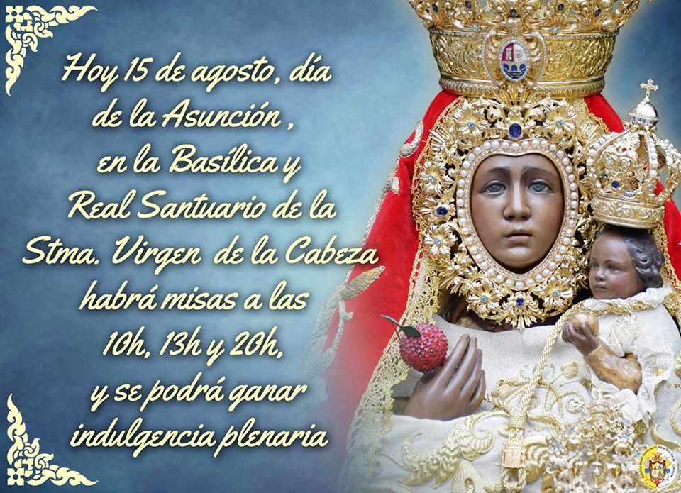 Hoy 15 de agosto, día de la Asunción, podréis ganar indulgencia plenaria, en las misas que se celebrarán en esta Basílica y Real Santuario, a las 10h, 13h y 20h.